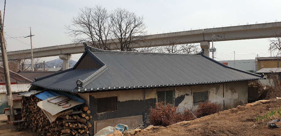 인천시 서구 오류동. 슬레이트를 철거하지않고 칼라강판 슬레이트골로 씌워