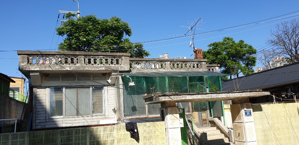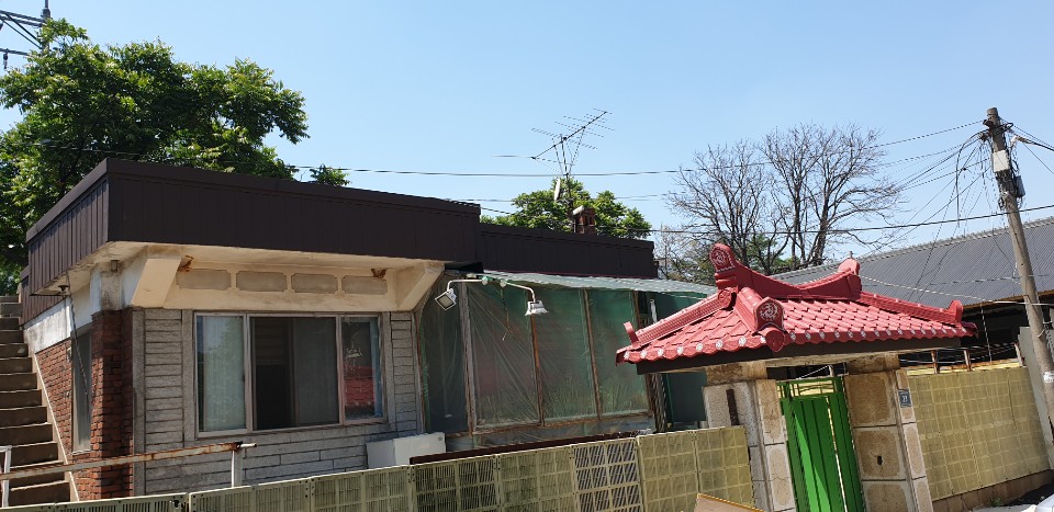 인천시 서구 왕길동. 노후된 데스리와 대문지붕공사.