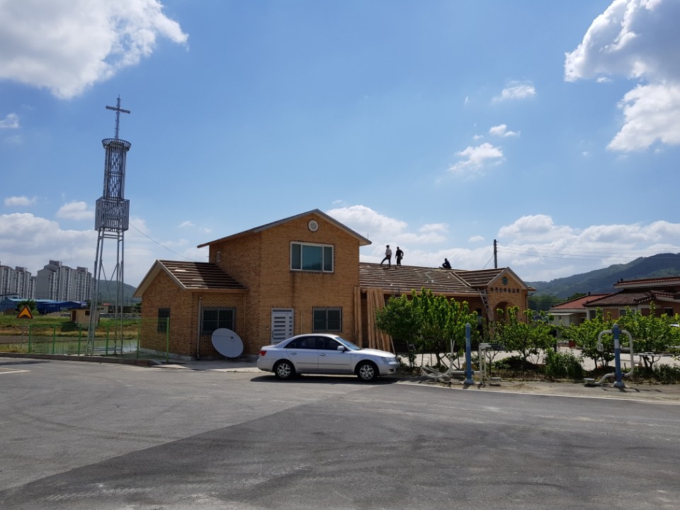 충북 음성군에 위치한 교회의 아스팔트 싱글지붕이 노후돼 칼라강판으로 지붕개량