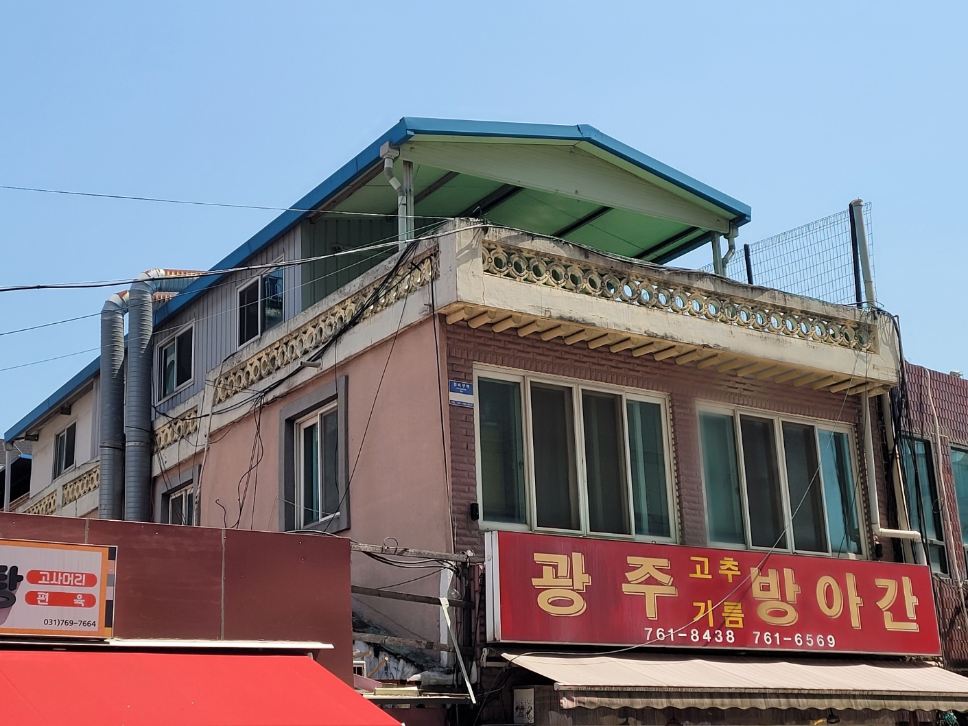 경기 광주시 경안동. 주택의 슬라브 바닥 및 데스리까지 아연도칼라강판 지붕재와 벽체로 완벽 시공함.