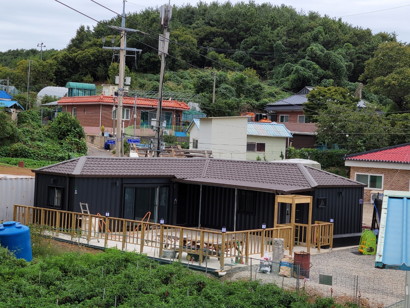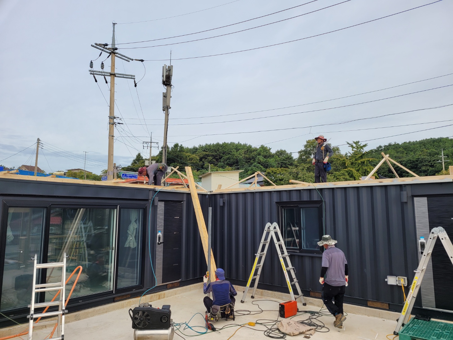 인천시 영흥도. 컨테이너지붕위에 아연도 칼라강판 평기와골로 시공함.
