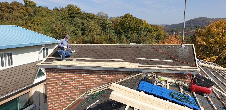용인시 구갈동. 아스팔트싱글지붕을 칼라강판으로 지붕개량함.