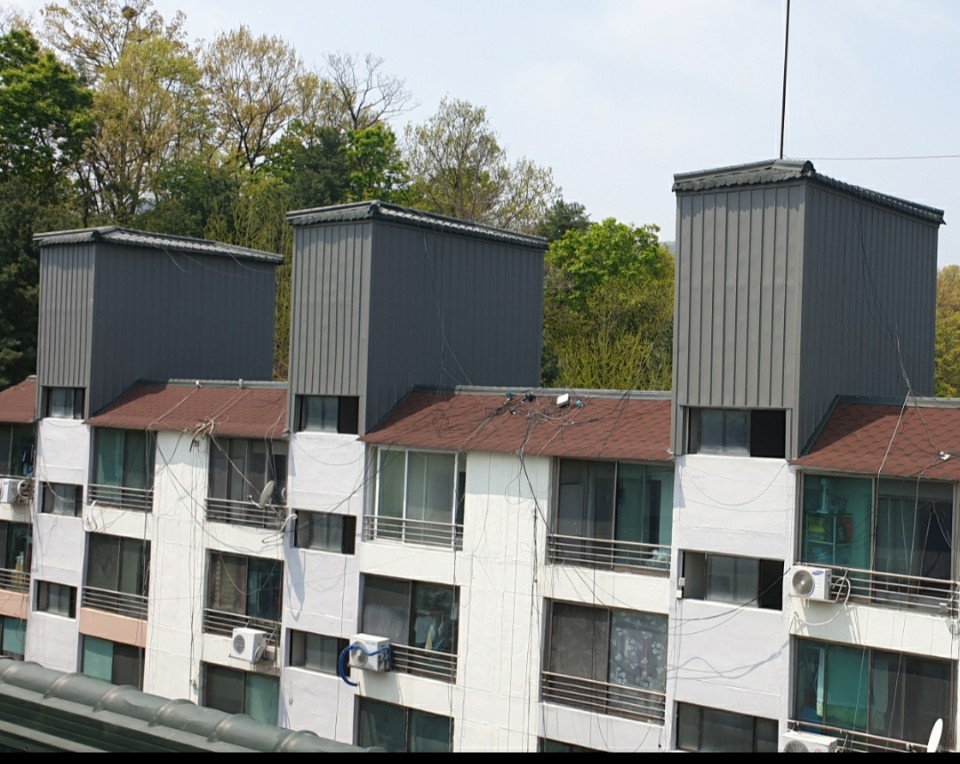 경기도 남양주시 진접읍. 아파트 물탱크 옥탑을 V250징크로 시공한 사례.