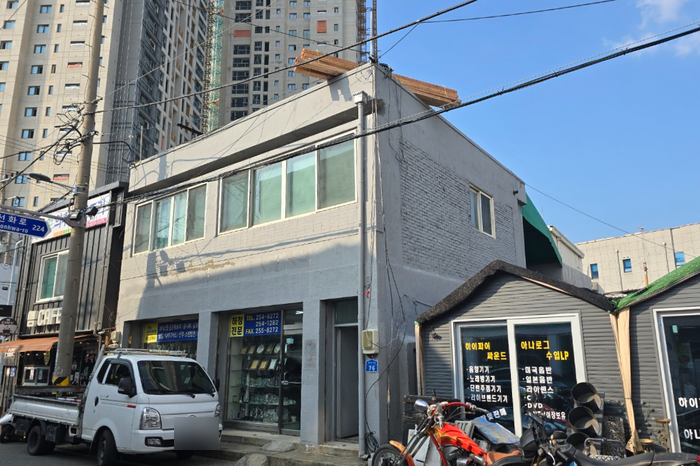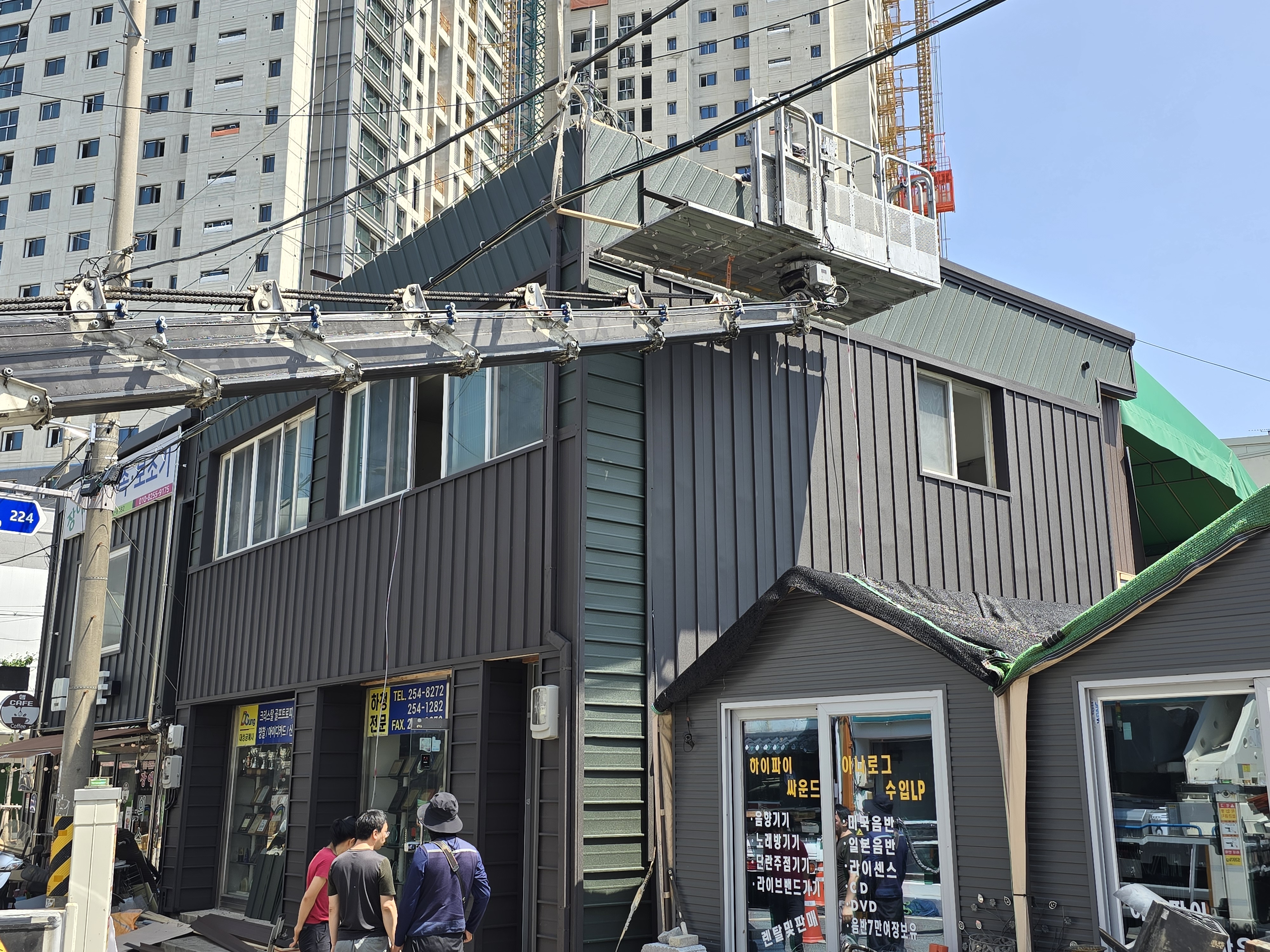 대전시 정동. 상가외벽을 아연도칼라강판 V250징크로 리모델링함.